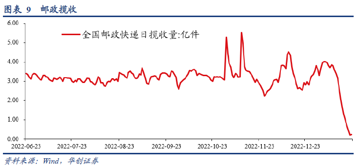 今年春节(1月21日-25日,除夕-正月初四),快递揽收量合计为1.95亿件。2022年春节期间(1月31日至2月6日,除夕-正月初六),根据邮政局数据,“揽收快递包裹4.2亿件,与2019年、2020年、2021年农历同期相比分别增长545%、338%、12.04%”。按正月初六、初七每日揽收环比增长30%估算,今年春节期间快递揽收或不及去年同期。