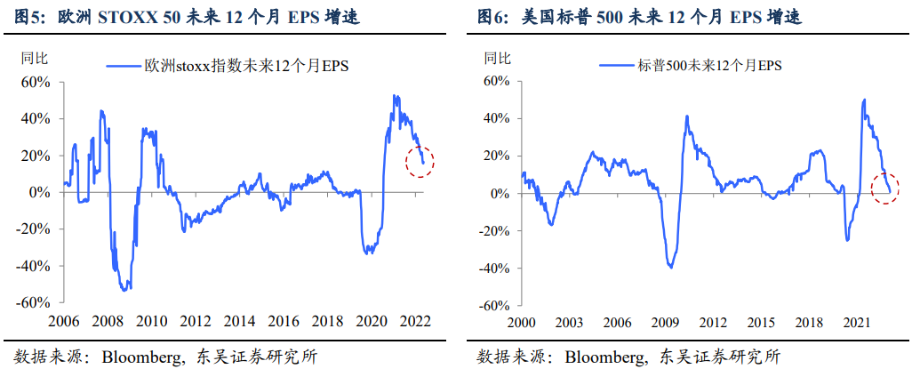 主线二:欧美经济“软着陆”预期似乎也在逐步升温。相较而言,欧洲方面预期的边际改善可能更加快速且明显,这一点从欧美股市背后的盈利预测可见一斑。
