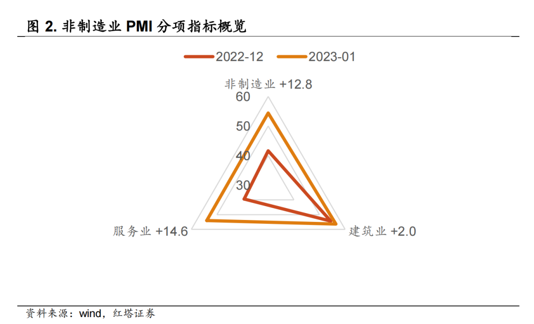 此前几个月,疫情对服务业尤其是线下的交通运输、旅游、餐饮等服务业造成严重干扰,所以在疫情扰动减弱以及节日效应的影响下,服务业景气度出现了明显反弹,可以看出居民消费意愿明显增强,市场活跃度回升。