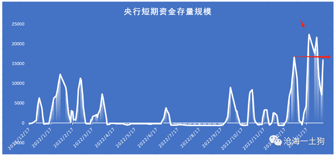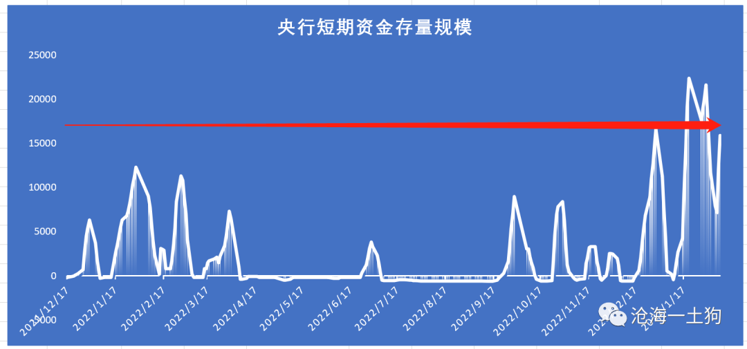 以本次春节为例,央行为了应对春节长假,把短期资金池的峰值规模拉到了2.2万亿。