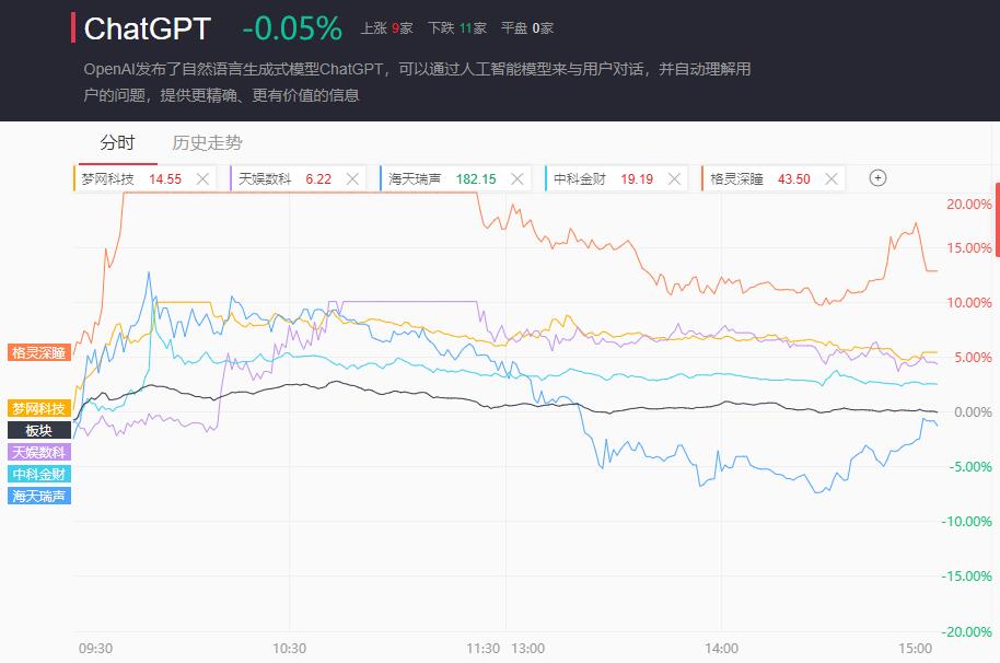 ChatGPT板块早盘持续火热,但火热过后开始风云突变,走势急转直下。