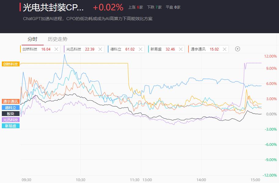 CPO概念早盘一度涨超4%,最终仅收涨0.02%。