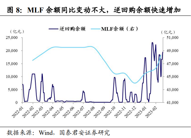 不同于2022年经济下行时加大对冲力度的两次“被动式”降准,2023年的降准是为了巩固经济企稳向好的势头以及缓和实体经济融资需求恢复与银行超储偏低的矛盾。在信贷持续改善的前提下,短期降准可期,幅度上或参照2022年两次降准幅度25bp,释放中长期流动性5000亿元左右,对于短端资产会构成利好,可适度博弈。