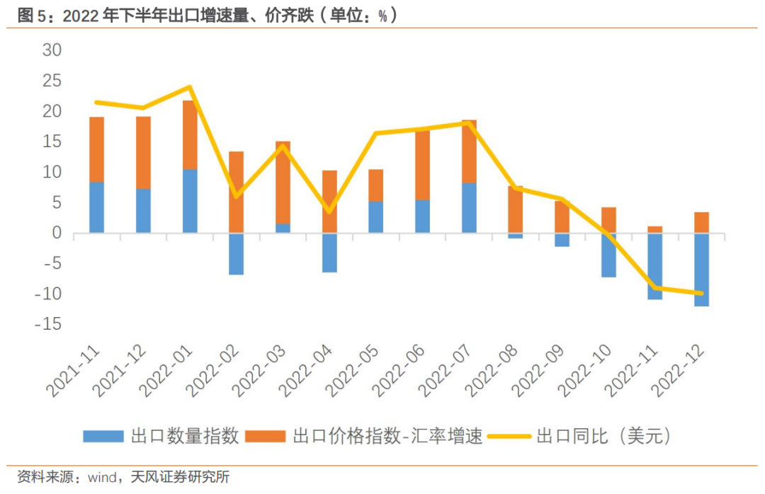 市场对今年出口一致悲观的理由看起来是坚实的,比如今年欧美经济衰退预期强烈,防疫政策优化后劳动力可能供给不足,去年出口的高基数,对出口份额回流和供应链整体外移的持续担忧等等。