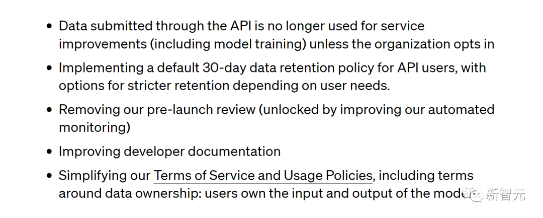 划重点!除非客户明确同意,否则它将不再使用通过API提交的数据来训练模型。