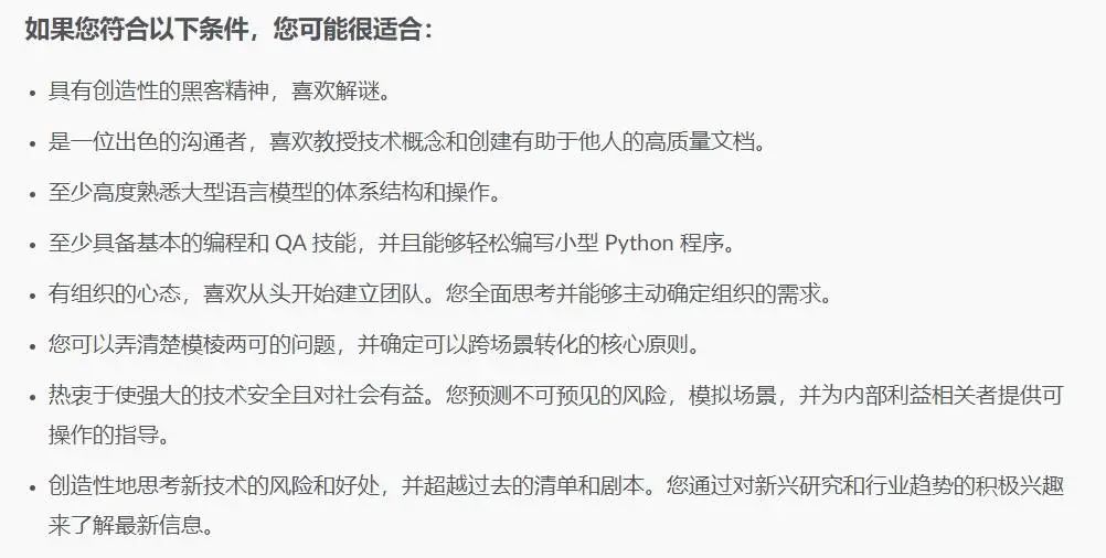 自由职业者工作平台 Upwork 开出每小时 40 美元的薪酬,请提示工程师生成博客文章和常见问题解答等网站内容。 看似和 AI 八竿子打不着的波士顿儿童医院,也打算招募 AI 提示工程师,负责编写分析医疗保健数据的脚本,白纸黑字征集跨学科人才: 理想的候选人应具有人工智能/机器学习、数据科学和自然语言处理方面的深厚背景,以及医疗保健研究和运营方面的经验。 由前 OpenAI 员工联合创立、被 Google 投资的 AI 初创企业 Anthropic,最近也在旧金山招募提示工程师,年薪高达 17.5 万到 33.5 万美元,换算成人民币就是百万年薪,这一岗位负责的主要内容是: 找出提示我们的 AI 完成各种任务的最佳方法,然后记录这些方法,构建一个工具库和一组教程,使其他人可以学习提示工程或简单地找到理想的提示词。 具体要求如下,其中硬性要求有 2 项:了解大型语言模型的架构、掌握基本的编程技能。
