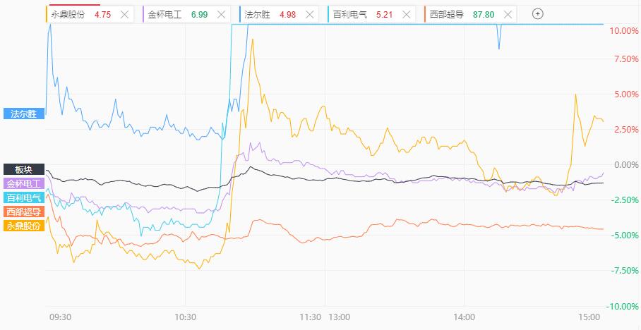 超导板块昨日高开低走后,今日再度呈现严重分化。