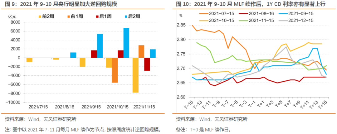首先,在历次央行提及“充分满足”的初期,通常伴随的是中期流动性回笼,而非超额续作MLF/TMLF,在此期间,央行释放的是货币政策并未转向紧缩的信号。