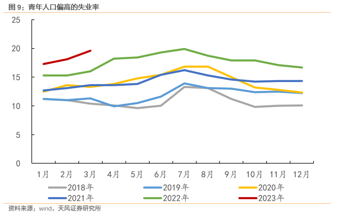 居民收入端的修复低于预期,居民失业率短期改善幅度低于预期,居民消费意愿修复力度弱于预期。