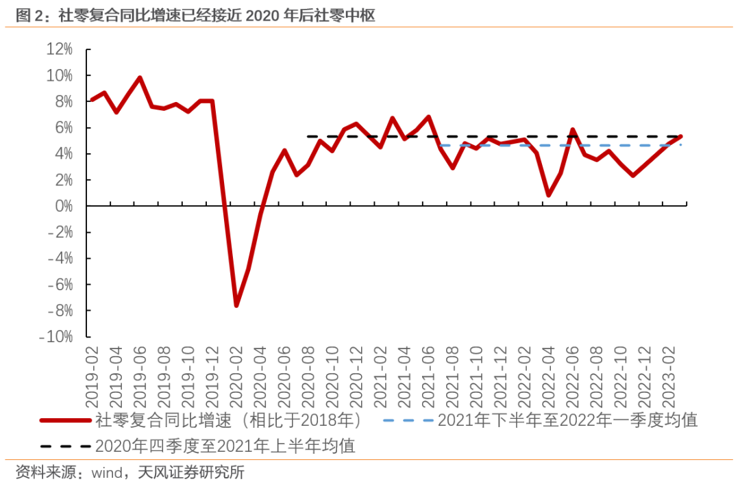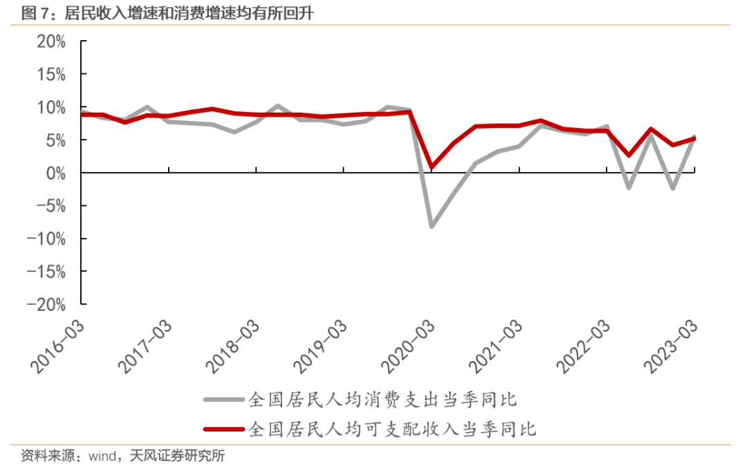 1季度城镇调查失业率从5.6%降至5.3%,居民可支配收入增速从去年四季度的4.2%升至5.1%,居民消费倾向开始好转并超过了2020-2021年同期水平,这些都是可选消费修复的信心。