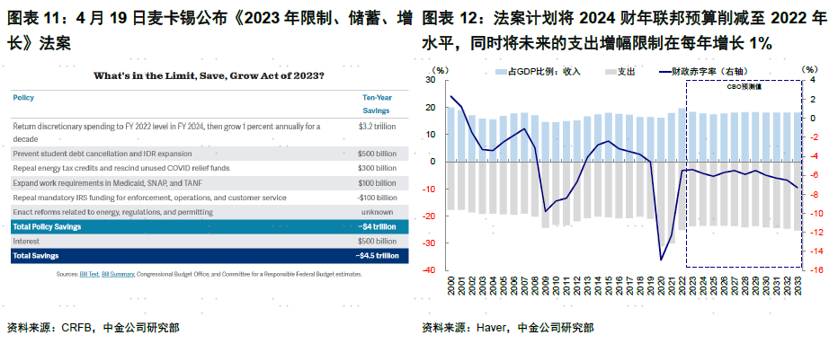 但这一影响相对更为短暂且负面冲击较小,毕竟届时市场关注点可能集中在风险解除,且美联储加息周期结束上,而中长期财政支出减少也有助于压制通胀。