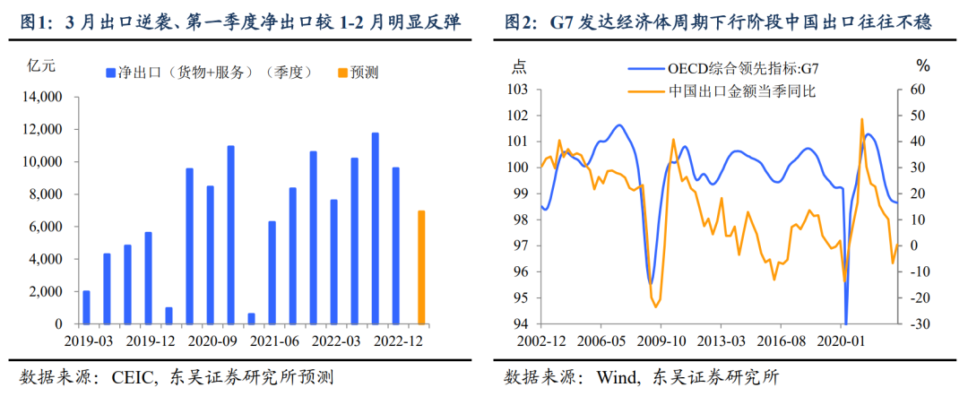 3月出口数据“逆袭”带来的“惊喜”并未持续太久,细思之下市场更加迷茫了:期待的政策没了,而经济的不确定性似乎更大了。3月出口同比增速飙升至14.8%,贸易盈余达到6010亿元,成为第一季度经济成绩单的重要“胜负手”——而历史同期这一规模从未超过3000亿元,我们测算如果3月进出口延续1至2月的低迷,那么第一季度GDP的增速将低于4%(图1)。