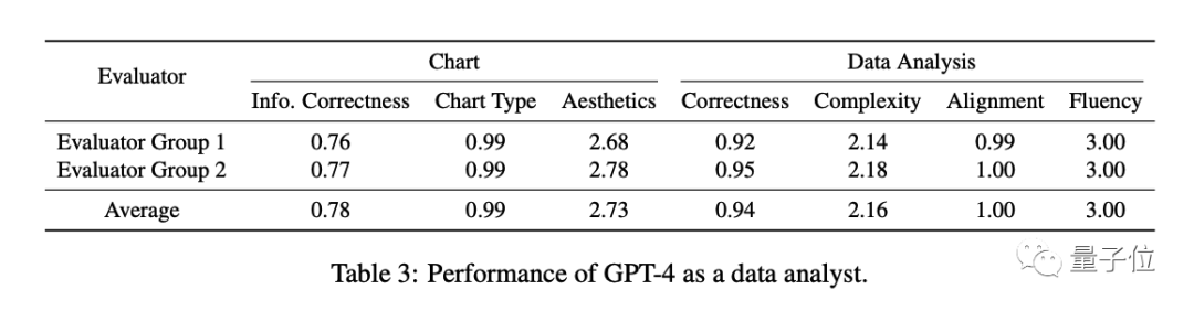 对于数据分析任务,GPT-4在一致性和流畅性中平均得到满分,验证了生成流畅且语法正确的句子对GPT-4来说绝对不是问题。