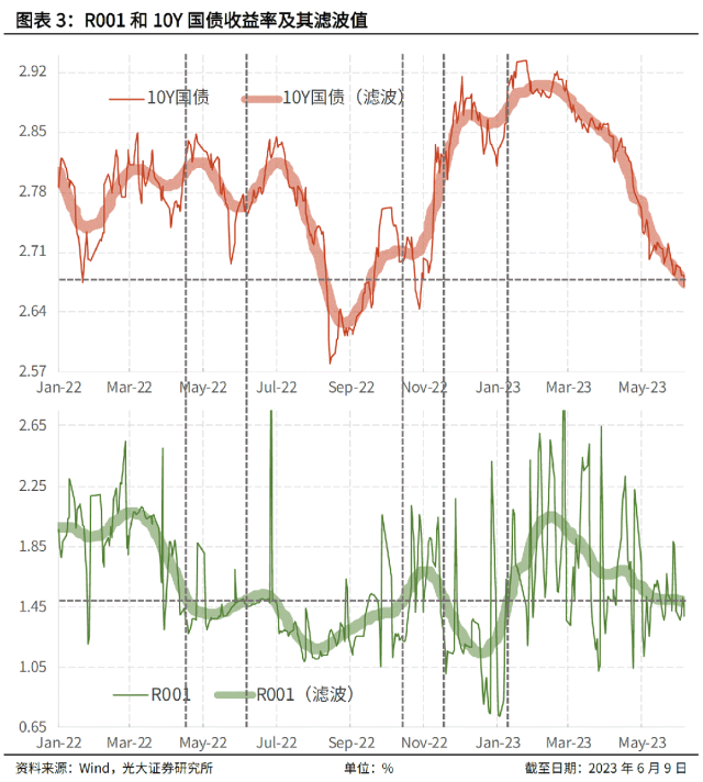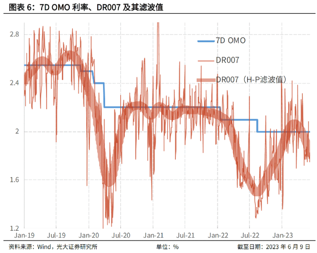 我们认为,这显然是搞错了因果关系。在我国市场化的利率形成和传导机制中,央行主要通过货币政策工具调节银行体系流动性,释放政策利率调控信号,在利率走廊的辅助下,引导市场基准利率以政策利率为中枢运行,并进一步传导至市场利率。显然,应是政策利率引导R001和存款利率等市场利率,而不是相反。