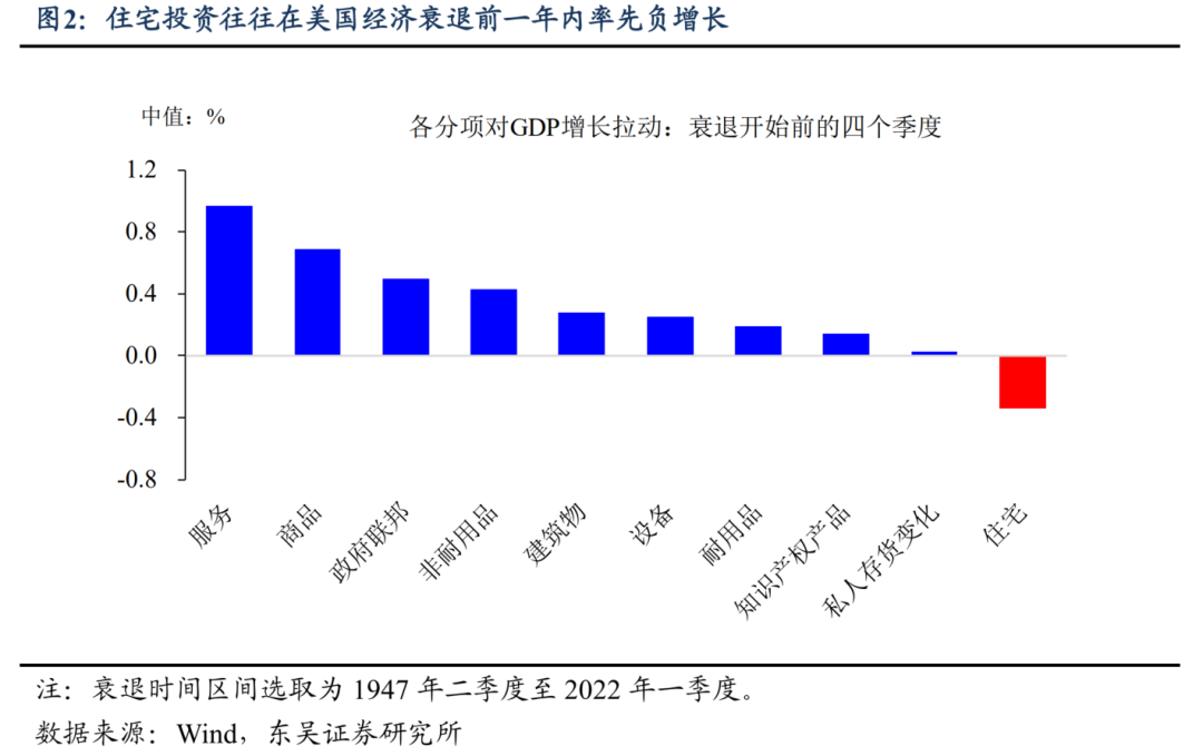 历史来看,在GDP的组成部分中,住宅投资的负增长历来是美国经济衰退的最佳预警信号(图2)。因此,如果当前的美国房地产正率先软着陆,是否意味着美国经济已经躲过了衰退?这对于美联储的货币政策又有何影响?