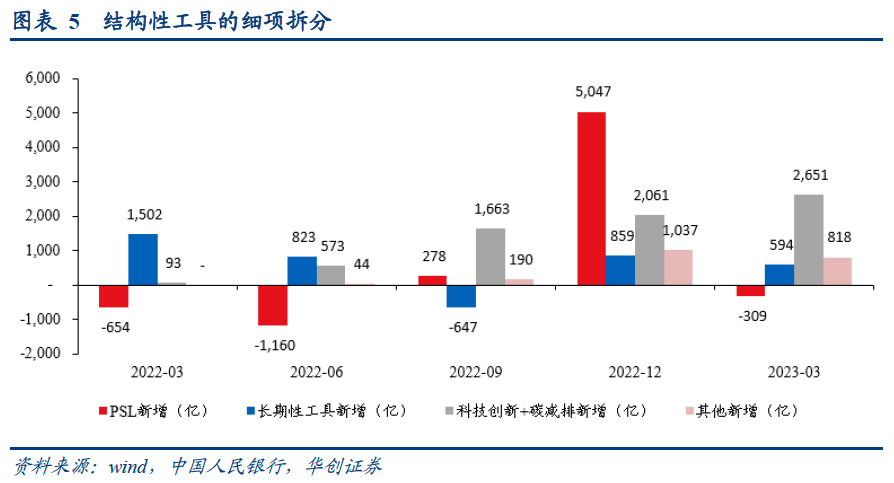 3、结构性工具中一季度投放主要以科技创新再贷款,碳减排再贷款以及支持煤炭清洁高效利用专向再贷款为主。(一季度结构性工具新增3754亿,上述三项再贷款新增2651亿)
