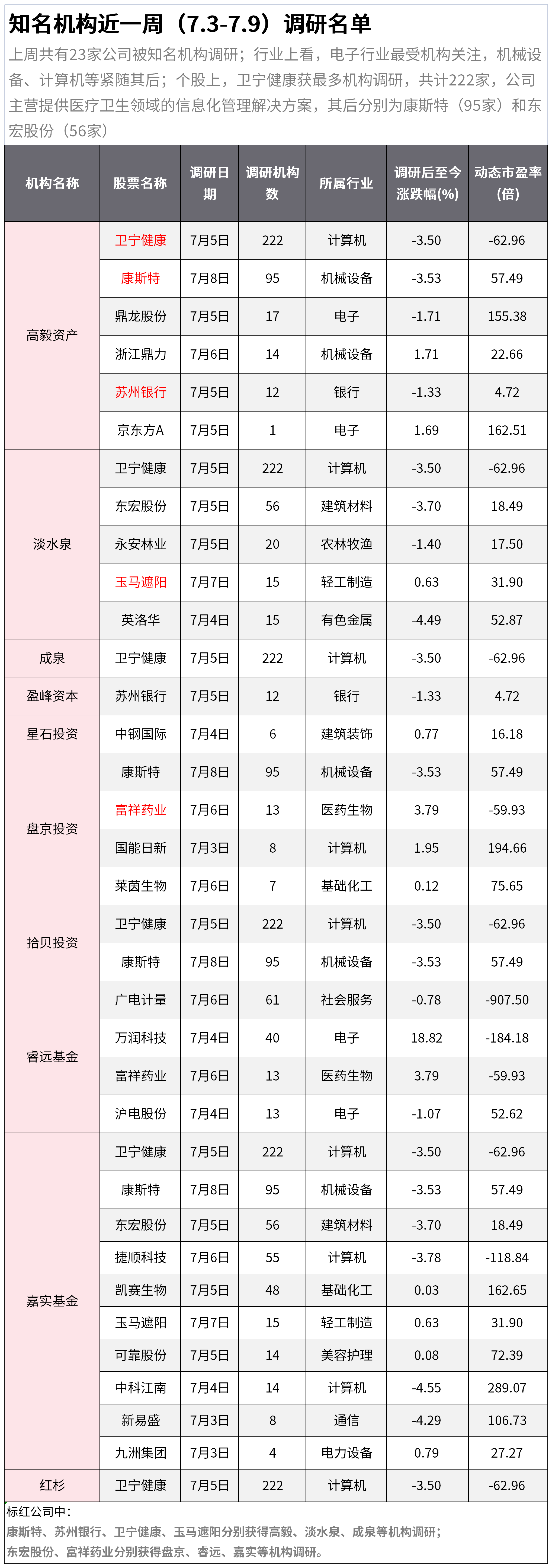 知名机构近一周(7.3-7.9)调研名单:机构扎堆这只超跌医疗信息龙头