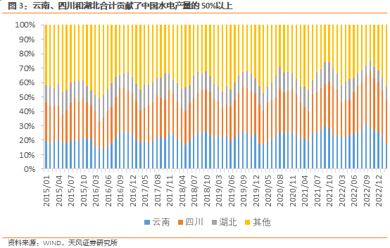 云南、四川和湖北合计贡献了中国水电产量的50%以上。今年云南发生严重冬春连旱,四川西北部和东南部出现中度及以上干旱,3-5月水电产量分别同比下降34.8%和10.3%。