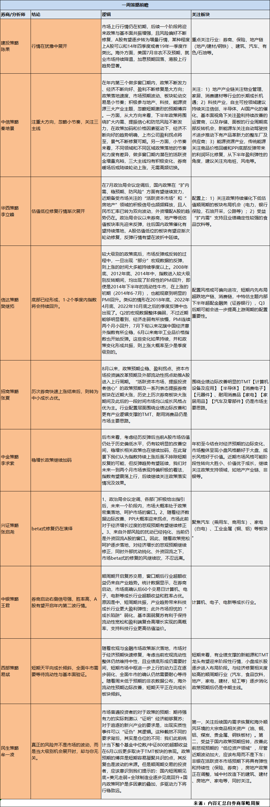 本周策略分析师继续积极看多。认为在券商暖场后,其他风格有望渐次表现。