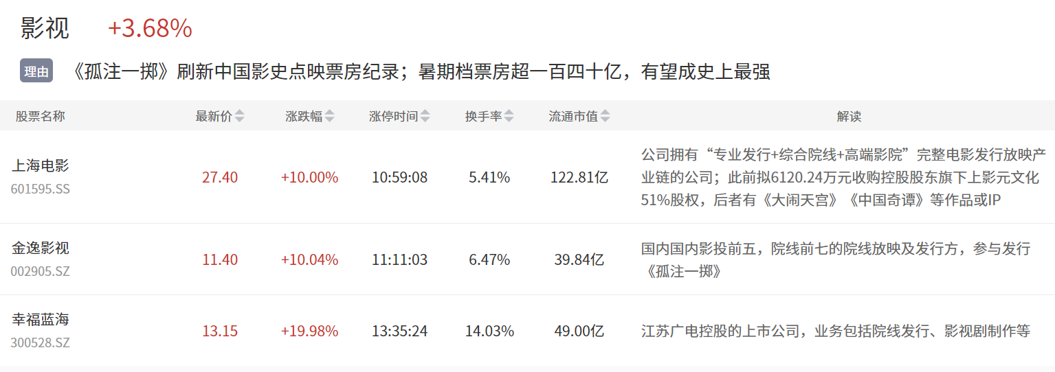 开源证券假设8月7-31日能维持7月以来工作日日均2.08亿、周末日均4.39亿元票房的水平,那么2023年暑期档最终票房或达211.89亿元,较2018、2019年暑期档分别增长22%和19%。我们认为暑期档票房大增或助力国产电影质量提升及更多优质电影定档后续重要档期,并拉动影院映前广告需求,给影投、院线、出品、发行及映前广告代理公司带来较大业绩弹性。