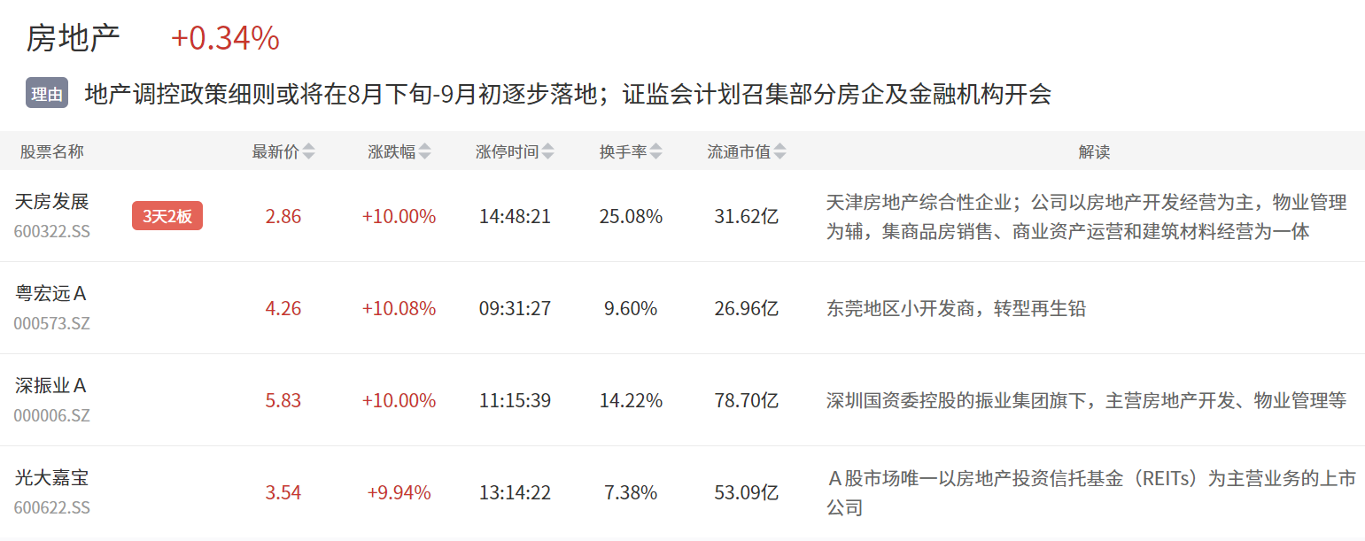 此外,据券商中国报道,地产调控政策细则或将在8月下旬-9月初逐步落地。
