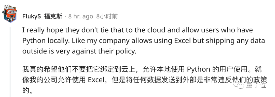 不少人觉得,Python的计算其实非常轻量化,希望微软能实现本地运行,毕竟上云会影响速度。