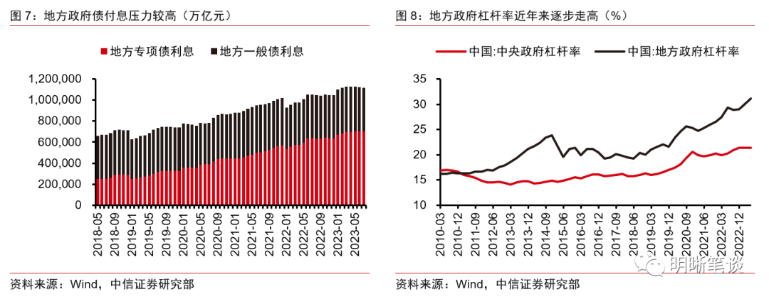 (2)地方债务化解需要维持低利率环境。截至9月1日,包括地方政府债和城投债在内的地方债务存量高达52.01万亿元,其中政府债存量约为38.5万亿元。财政部公布7月地方政府债加权平均发行利率为2.95%,则当下全国地方债付息压力高达1.53万亿元。在7月24日政治局会议提及防范化解地方债务风险的表述后,8月18日央行、金融监管总局召开金融支持实体经济和防范化解金融风险电视会议上,以及28日召开的十四届全国人大常委会第五次会议上均有对地方化债做进一步的指示。然而地方债务化解的核心在于降低债务成本,因此维持低利率环境的必要性较高,因此在中长期的视角下,我们认为债市利率中枢回升的风险不大。