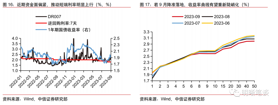 中长期来看,预计宏观环境“弱复苏”的局面难以快速扭转,且经济复苏的进程仍需宽松货币政策助力,调整结束之后,债市的配置价值将再度显现。制约经济复苏的一大重要因素在于内需偏弱,而内需的恢复可能并非一朝一夕之功,经济“弱复苏”的局面可能也难以快速扭转。且经济复苏的进程可能也需要宽货币政策的助力,因此,中长期而言,在政策发力推动债市调整之后,预计债市的配置价值将再度显现。建议重点关注9月的MLF操作,在当前资金面偏紧运行的情况下,9月有必要再度降准,若9月降准落地,资金面重回宽松,则有望扭转利率的快速上行趋势,前期调整较多的短端利率更有望受益,国债收益率曲线也有望重新陡峭化。