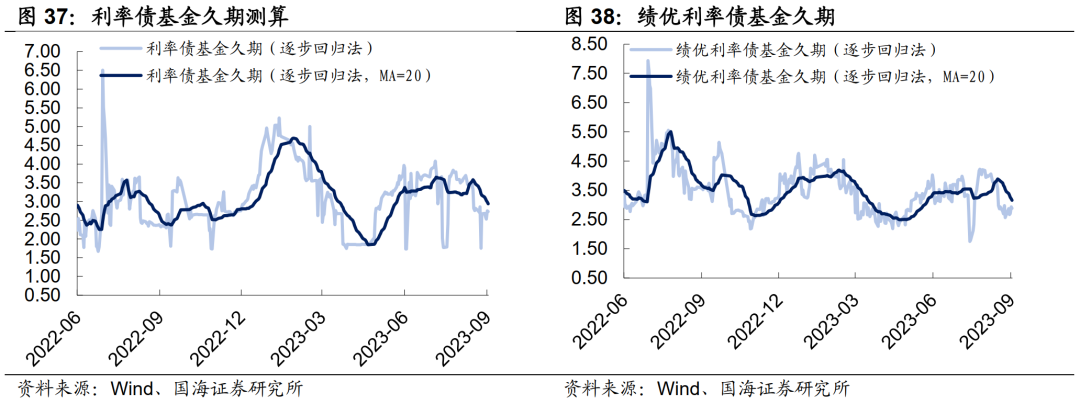 本周市场绩优和一般利率债基金久期测算值分别为3.16和2.94,较上周分别下行0.30和0.22。
