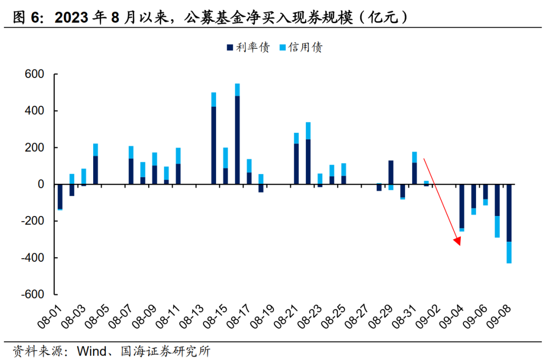 银行自营和银行理财在止盈诉求下,部分赎回公募基金,引发赎回潮。中长期纯债基金的机构投资人占比基本维持在95%以上,商业银行自营及理财作为主要的机构投资人,面对债市的快速调整,出于止盈目的会赎回公募基金,导致公募基金净卖出规模大幅增加,引起债市的负反馈。