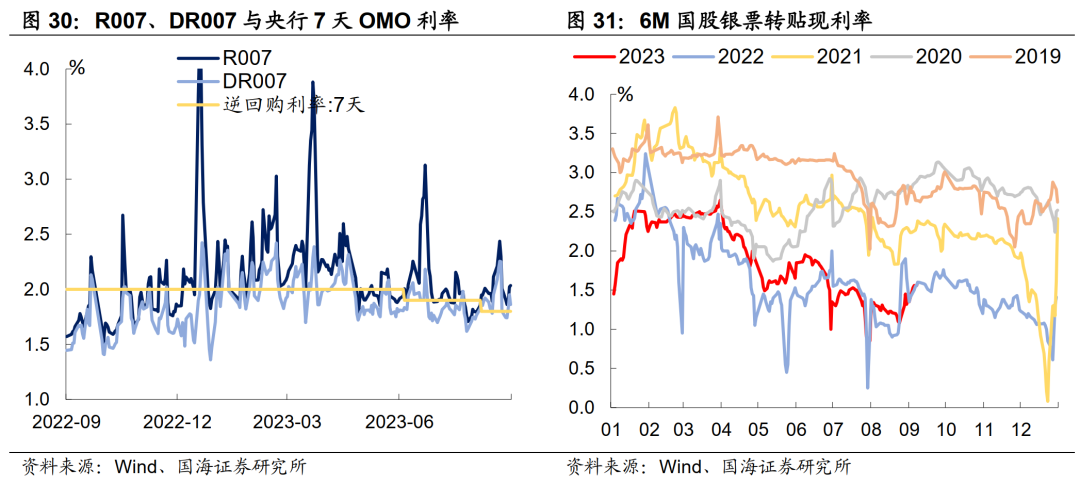 本周跨月流动性仍然偏紧。R007和DR007分别收于2.04%和1.86%,较上周基本持平。6个月国股转贴利率收于1.60%,较上周上行25BP。