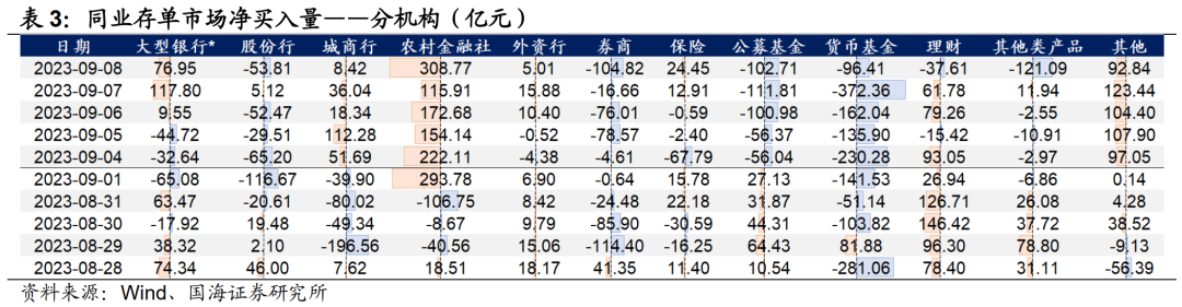 3)同业存单市场,本周多头集中度有所回落,主要表现为基金对存单由净增持转为净减持,本周累计净减持427.9亿元,较上周增加606.2亿元。