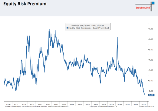 4. 美股的股权风险溢价(即对风险的补偿)是过去20年来新低,非常不吸引。