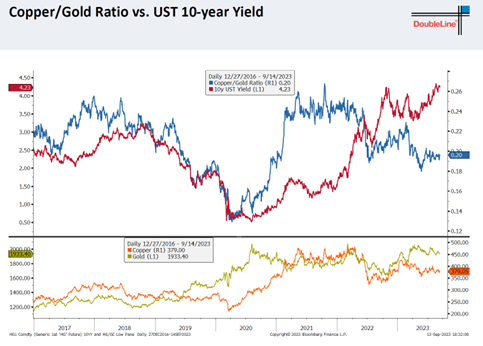 铜金比和美债在最近一年背离严重,他预期是美债会回落收敛背离。