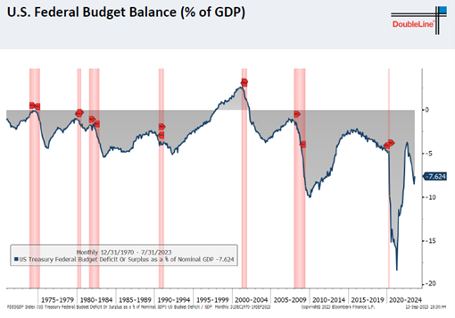 Gundlach认为从去年3季度以来几乎所有的美国GDP增速都来自于财政赤字扩张(3.5%的GDP).
