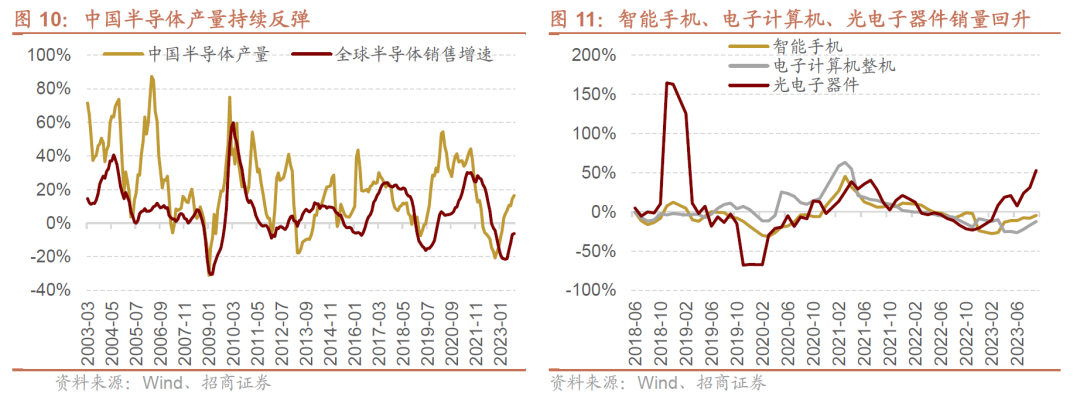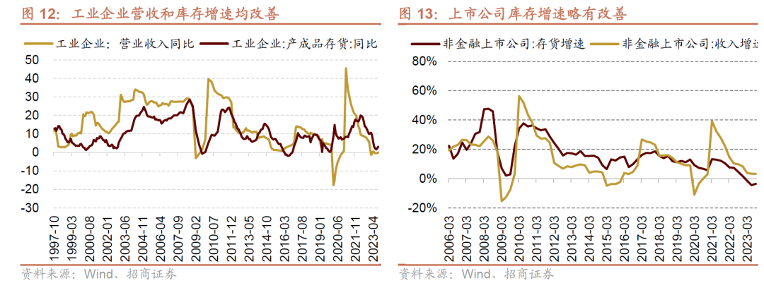 整体来看,本轮库存周期基本进入尾声, 处于被动去库向主动补库过渡阶段。8、9月工业企业营业收入增速和库存增速均边际改善,初现主动补库存迹象;上市公司层面最新三季报显示存货增速略有改善,收入恢复相对有限,但利润端已经有多好转。考虑到库存持续去化以及需求端边际改善趋势的确认,2023Q4-24Q1工业企业或将进入到主动补库阶段。