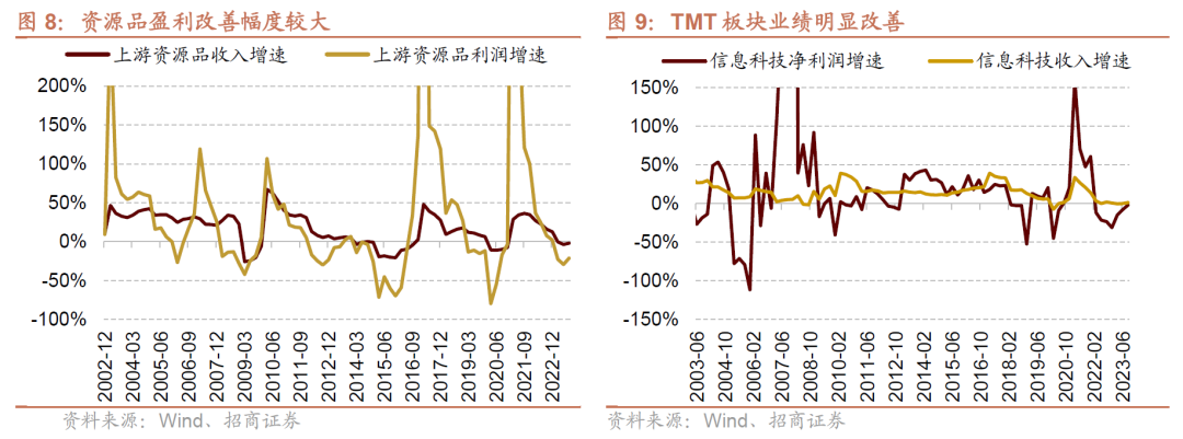 第三,行业层面,TMT、医药如期改善, 资源品增长超预期
