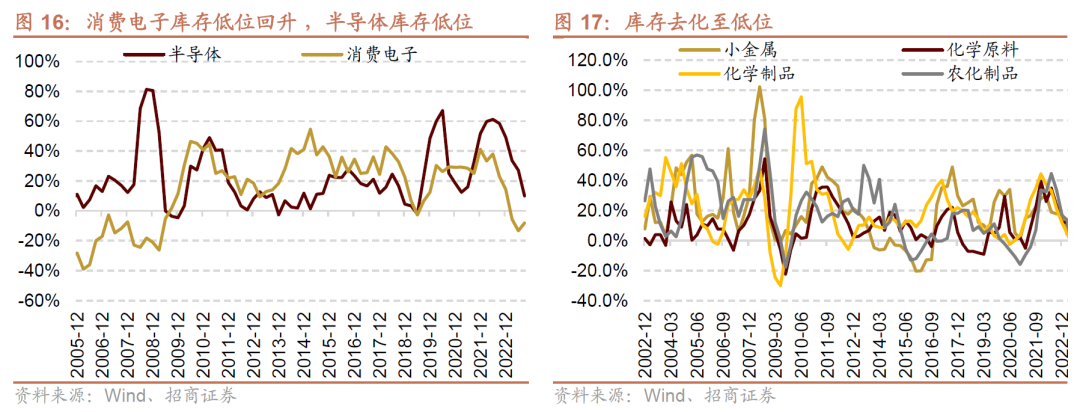 主/被动去库存接近尾声的领域:如库存处于低位的军工电子、通信设备、医疗服务、化学制药、化学制品、造纸;以及需求出现改善的部分TMT领域的半导体、传媒等。