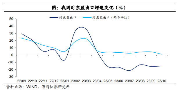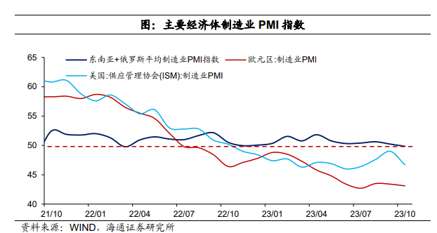 另一方面,海外需求景气尚可,目前欧美等主要经济体景气指数有韧性,将对我国外需有一定支撑。考虑到东盟等主要经济体景气指数相对比欧美表现要好,年初以来持续稳定在枯荣线以上,对我国出口有持续的贡献。