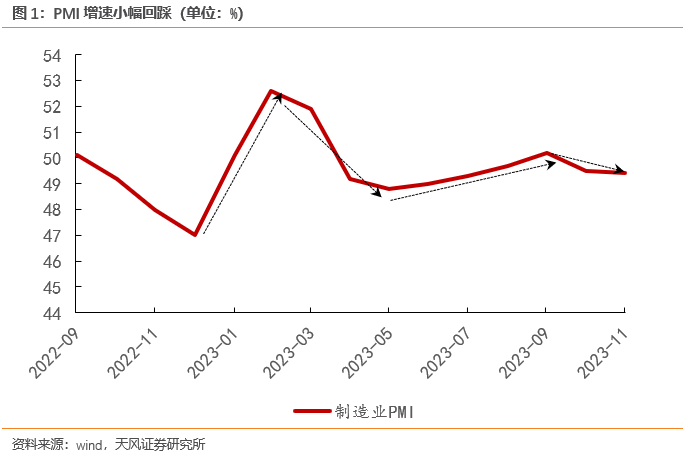 在9月PMI重回荣枯线后,PMI连续两个月回落,11月受产需拖累,PMI小幅回落0.1个百分点至49.4%。