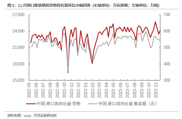 11月拖累经济的主要是基础原材料行业和消费品制造业。比如随着冬季来临,北方室外作业项目逐渐停工,水泥、砂石等建筑原材料的需求持续回落,对应水泥发运率等高频数据下行。