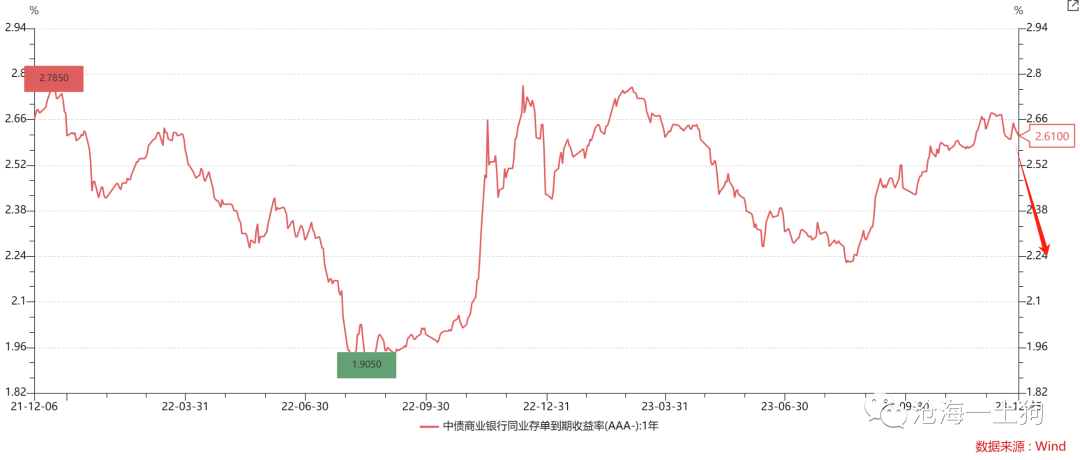 也就是说,2.57%的十年国债利率已经隐含了一年存单利率将要回落到一个很低的位置。