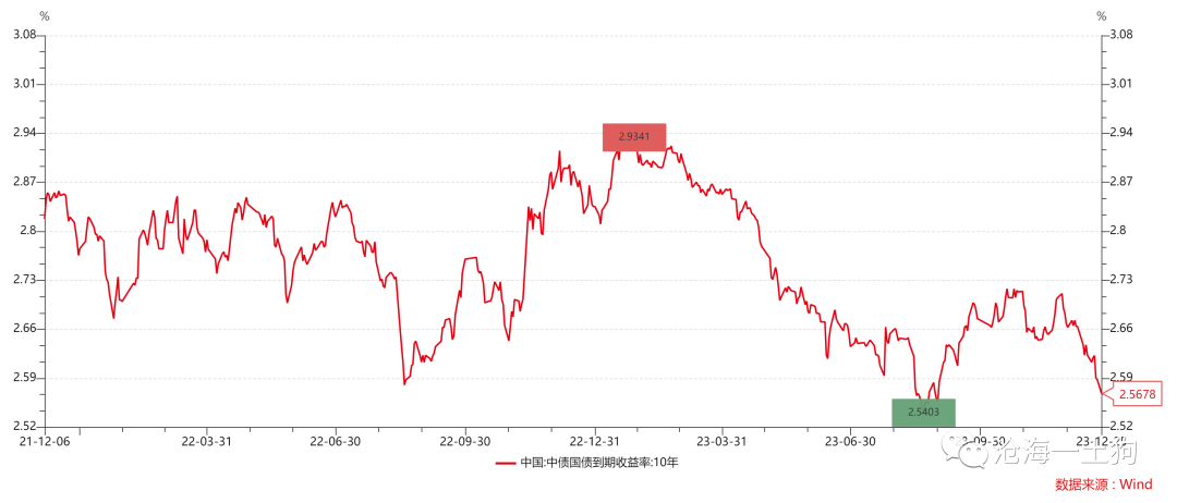 临近年末,十年国债利率进一步下行,来到了2.57%附近,已经十分接近今年8月份的低点2.54%了。
