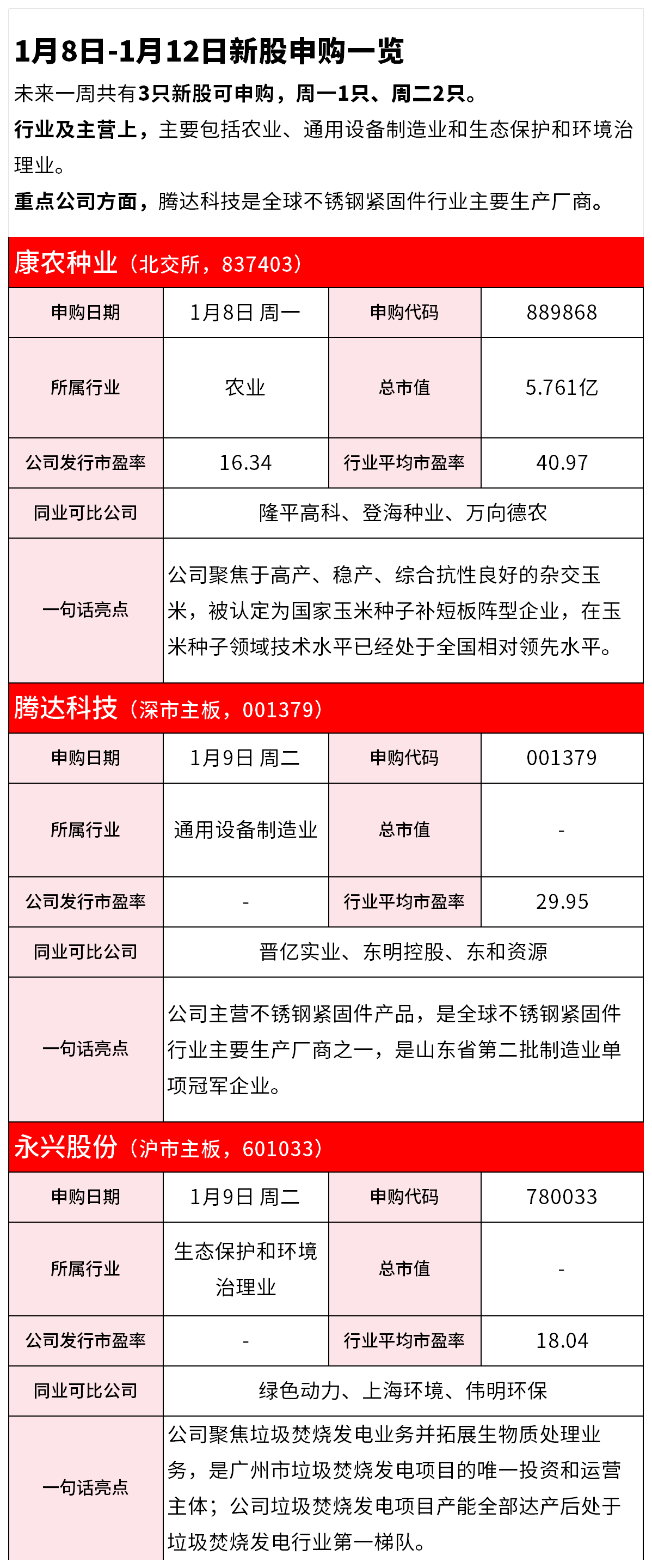 【IPO雷达】1月8日-1月12日新股申购一览 马子堃 2024/01/07 16:00 风险提示及免责条款 市场有风险,投资需谨慎。本文不构成个人投资建议,也未考虑到个别用户特殊的投资目标、财务状况或需要。用户应考虑本文中的任何意见、观点或结论是否符合其特定状况。据此投资,责任自负。