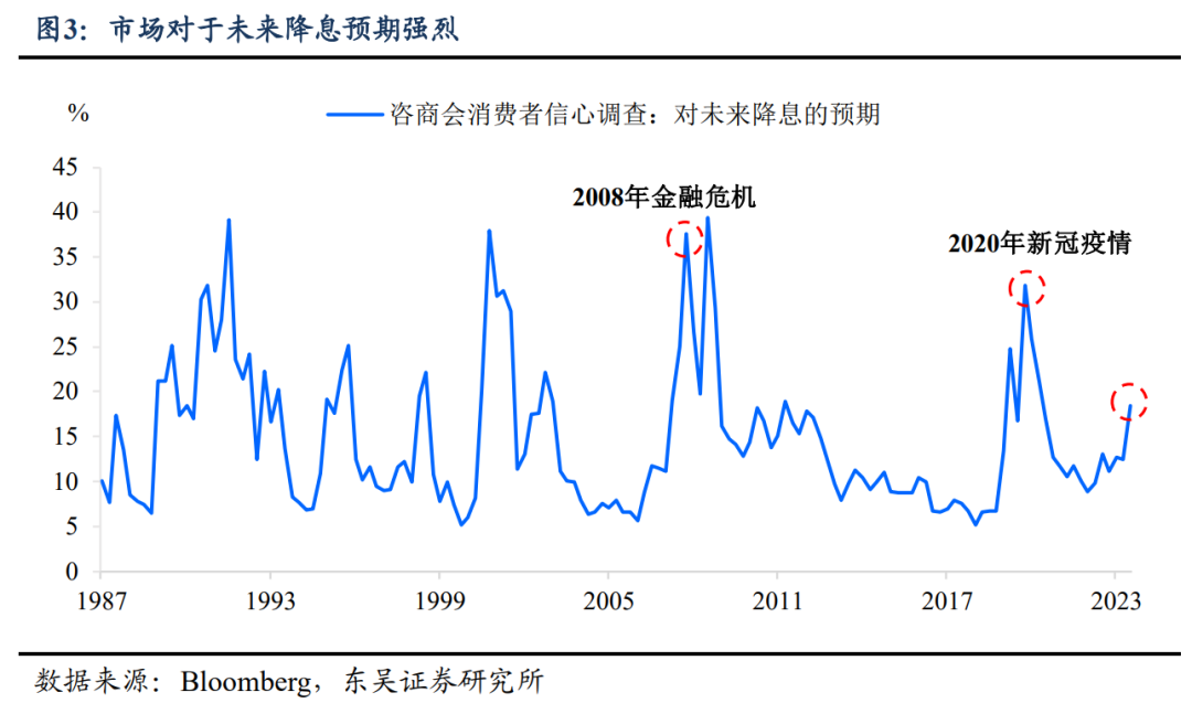 二是,市场对全年降息的激进预期(2024年降140bp,约6次),与超韧性的经济基本面相矛盾。因此往后的风险在于,即便鲍威尔少见地没有像欧央行一样立马打压降息预期,也很有可能在1月议息会议上不再保持“沉默”。