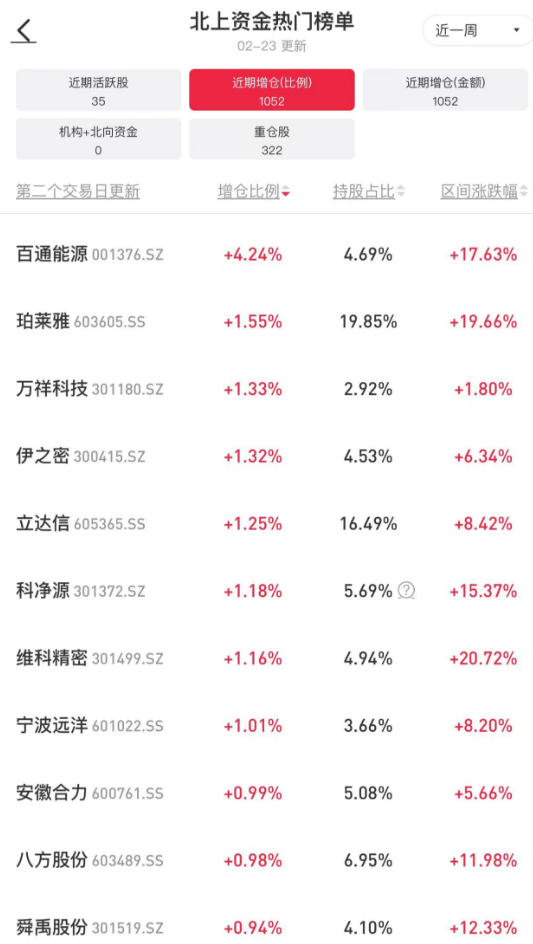 节后首周上演暴涨行情,北上资金继续大幅净买入107亿元,连续4周净买入,彻底扭转了去年下半年以来持续净卖出的趋势,其中加仓重点在沪市,共获获得超167亿元净买入,深股通则被净卖出超60亿元。