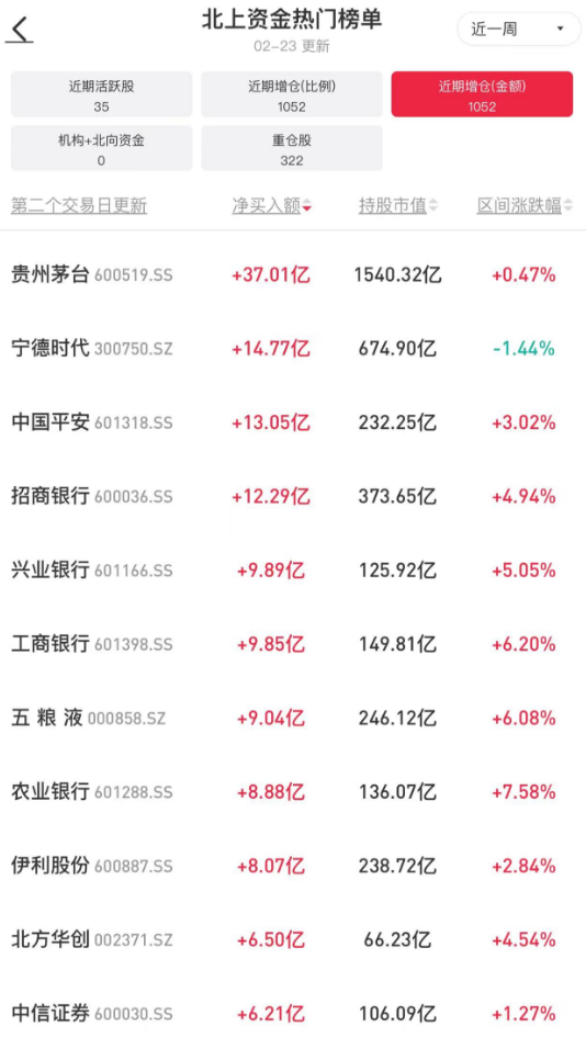 继节前最后一周约16亿扫货贵州茅台之后,北上本周继续加码。