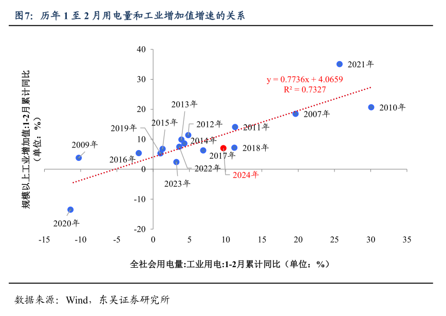 第三,由于年初尤其是1月气温偏低,以及产业结构持续调整,供电等公用事业增速在2023年之后继续保持高位,且持续高于整体工业产出水平。