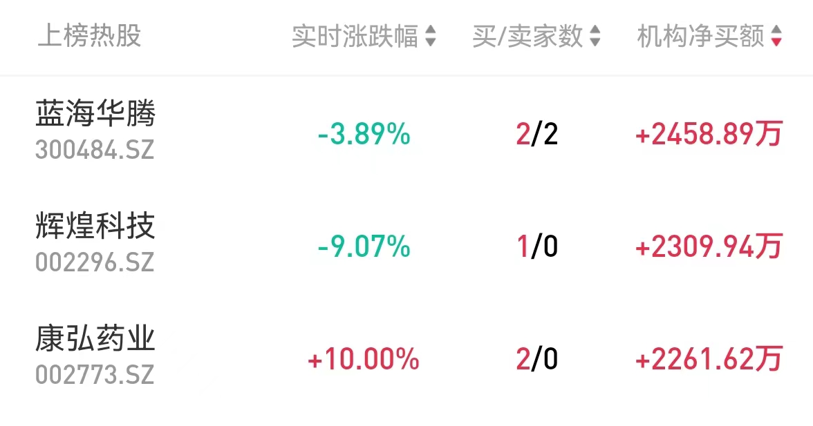 龙虎榜机构热股