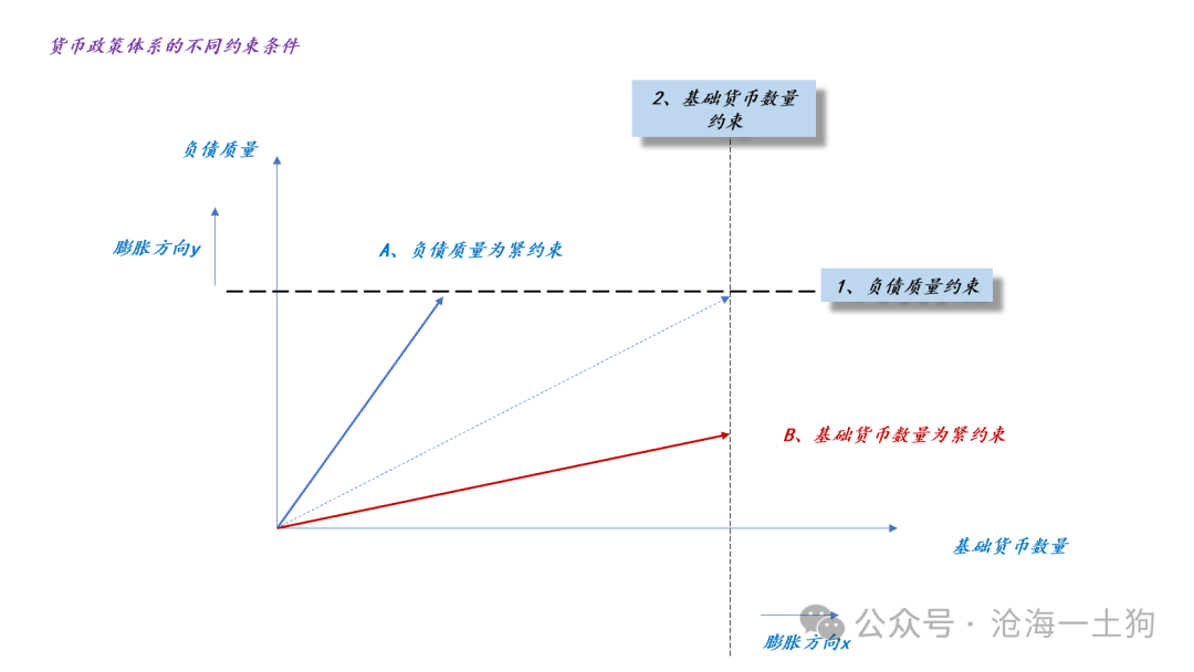 如上图所示,我们既可以选择体系A,让负债质量成为紧约束;也可以选择体系B,让基础货币成为紧约束。